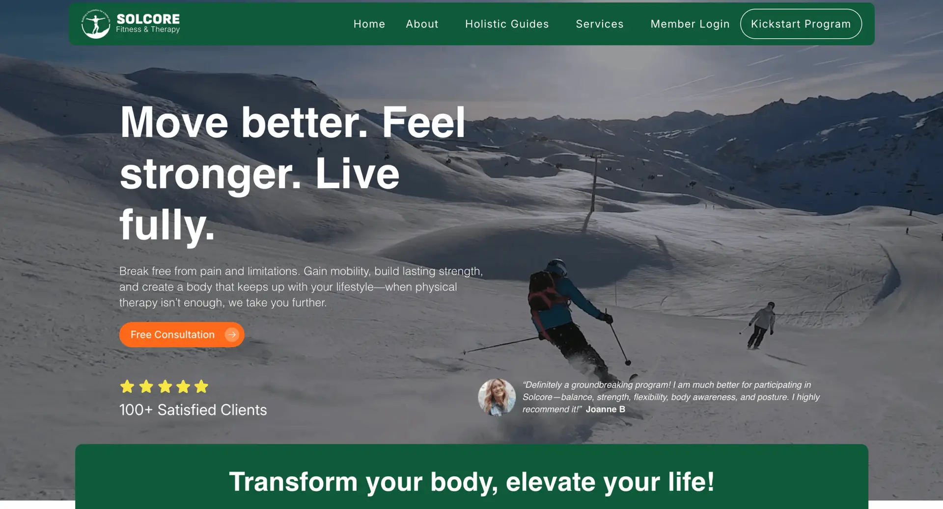 “Definitely a groundbreaking program! I am much better for participating in Solcore—balance, strength, flexibility, body awareness, and posture. I highly recommend it!” Joanne B